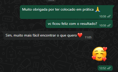 Hoje, com um sistema de organização, minha casa funciona, minha rotina é mais leve e o estresse ficou para trás.