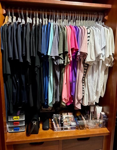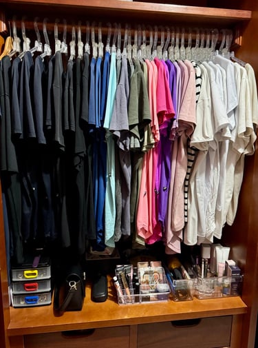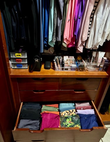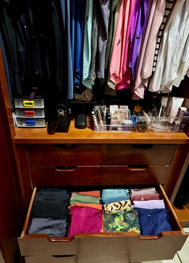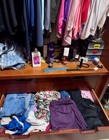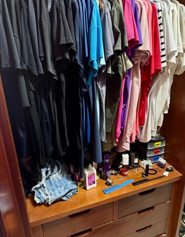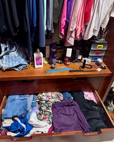 Eu também já fui bagunceira! Roupas misturadas, sapatos amassados, cosméticos vencidos… e quando eu dizia “basta”, passava o dia inteiro ou até o fim de semana todo arrumando tudo. Mas, em poucas semanas, a bagunça voltava — sempre o mesmo ciclo.